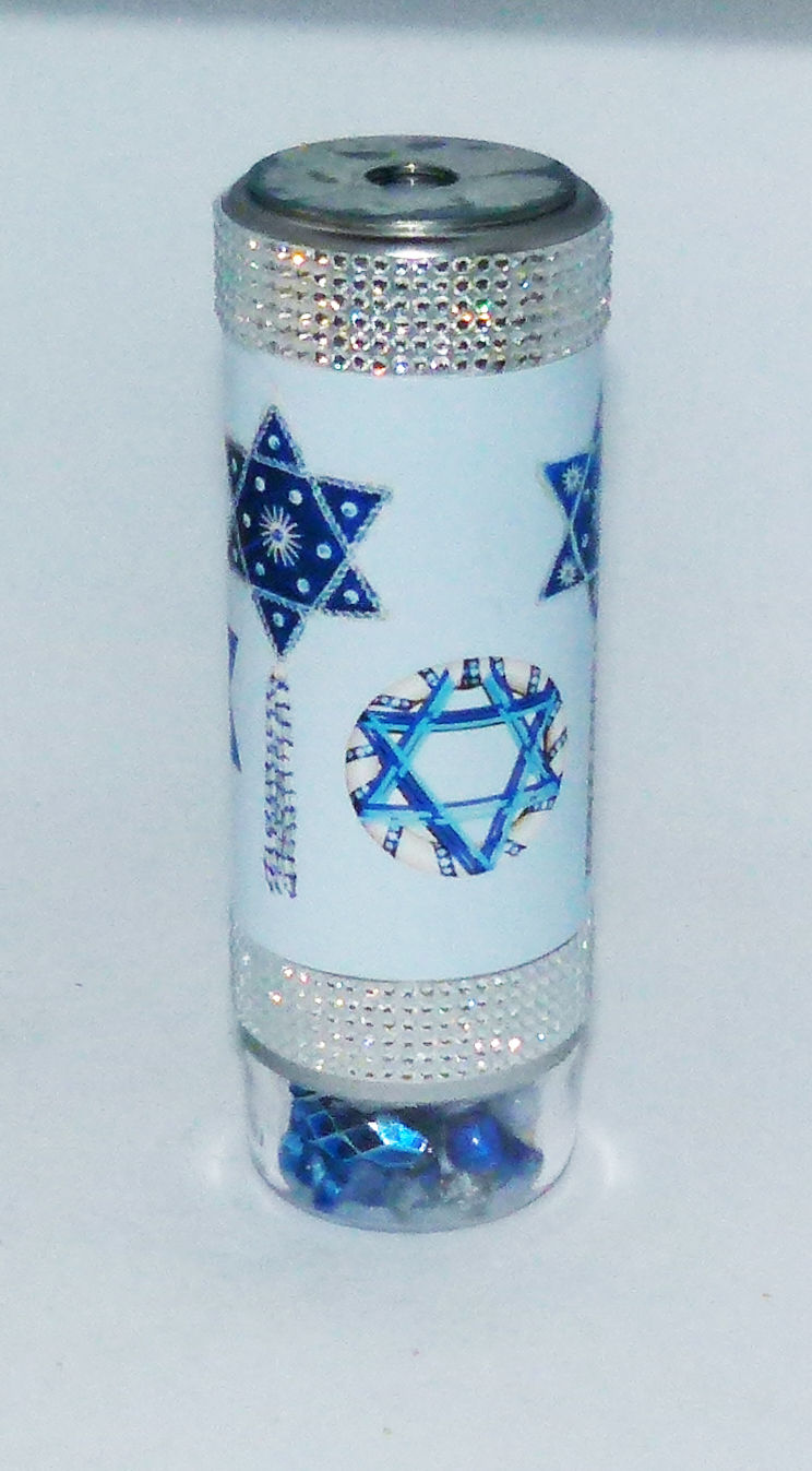 A 2-mirror kaleidoscope with matching interior and exterior colors. Approximately 6" tall with an independently turning cell.